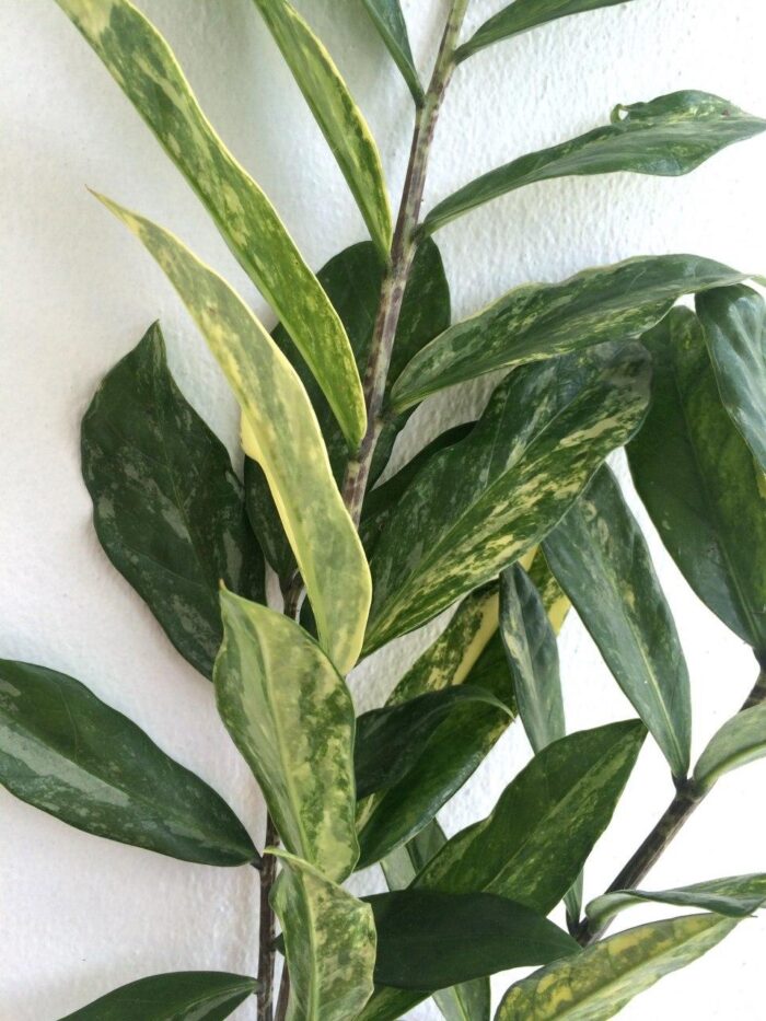 | Вариегатный (Z. variegate)— это крупные растения до 1,5 м в высоту. Отличается пестрой, мраморной окраской листьев или иного, отличного от обыкновенного замиокулькаса, цвета. |